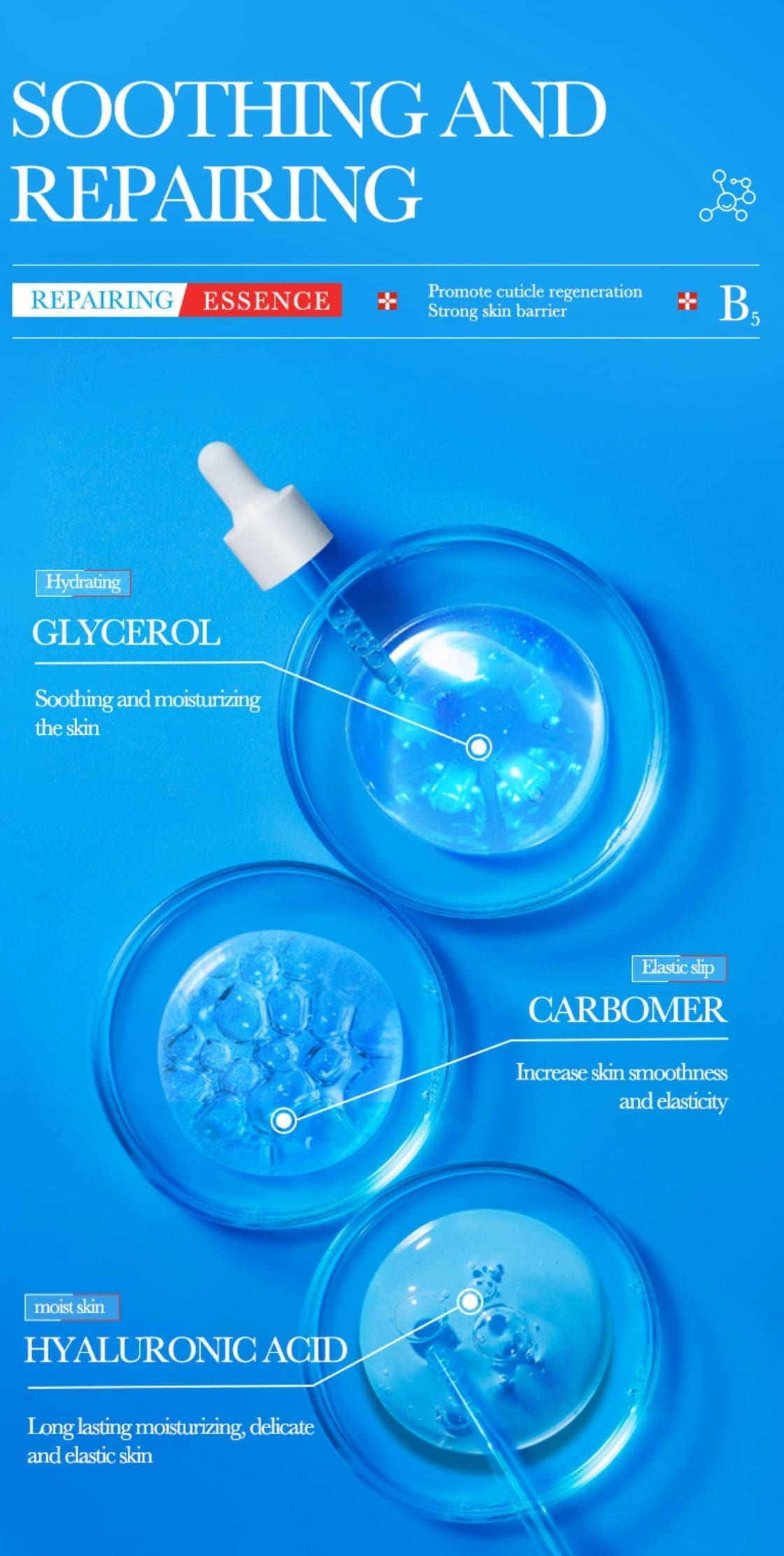 Ši formulė apima penkias hialurono rūgšties formas. Hialurono rūgštis yra natūraliai odoje esantis drėkiklis, kuris jungiasi su vandeniu. Įtrauktos formos yra mažos, vidutinės ir didelės molekulinės masės molekulės, HA kryžminis polimeras ir hidrolizuotas HA. Formulėje taip pat yra keramidai, kurie padeda išlaikyti drėgmę odoje.
