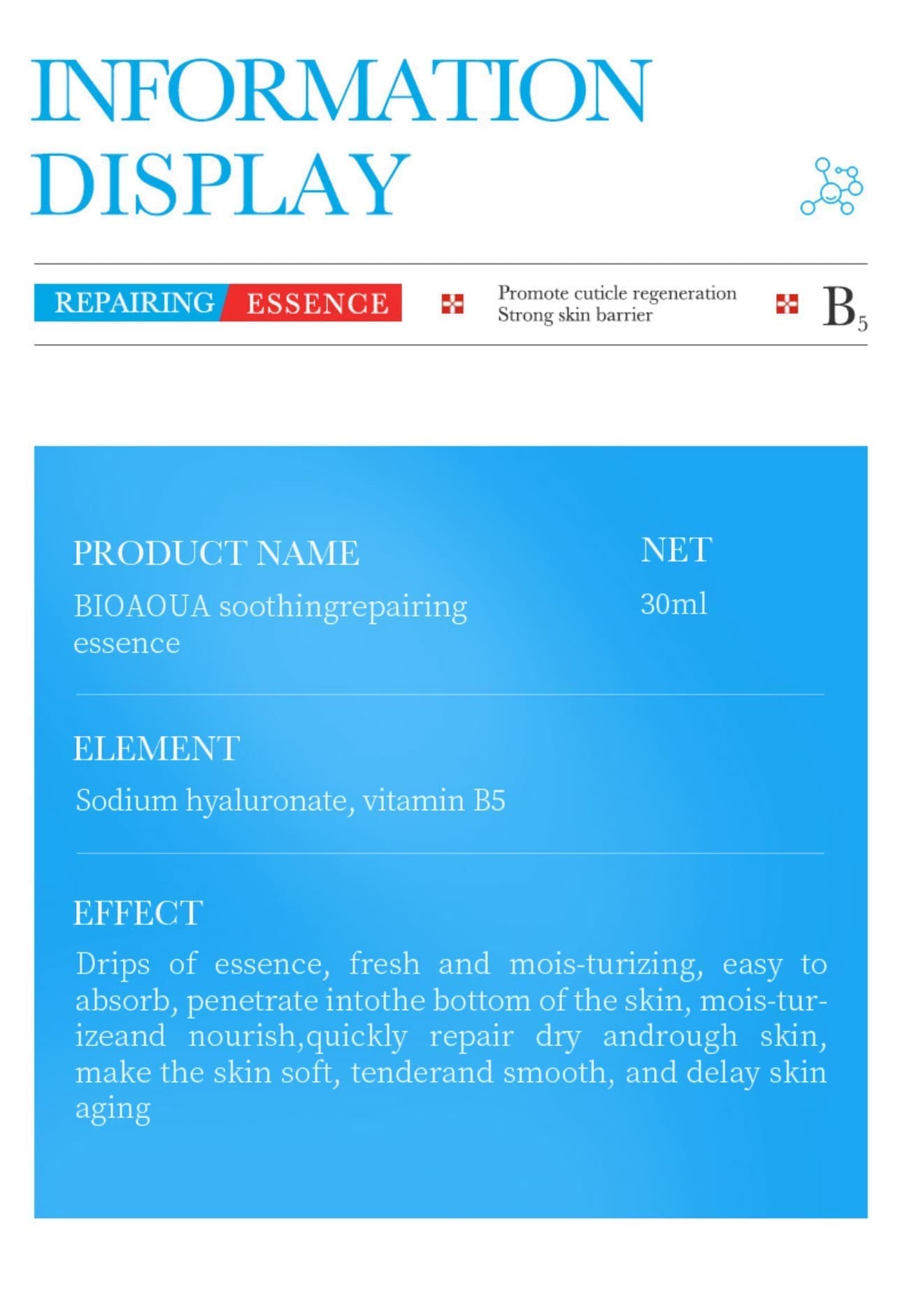Nauja sukurta Bioaqua formulė su B5 grupės vitaminais ir hialurono rūgštimi.