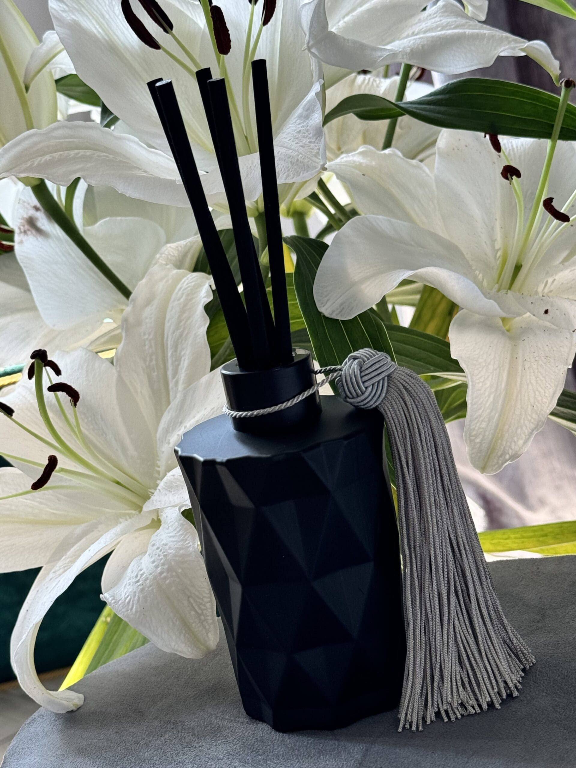 Pristatome mūsų „Diamond Milea“ namų difuzorių, turintį 170 ml talpą, prabangų papildymą kiekvieniems namams. Įspūdingas geometrinis butelio dizainas spinduliuoja eleganciją ir išskirtinumą, padarant jį įspūdingu akcentu bet kurioje patalpoje. Šis difuzorius sukurtas ilgalaikiam kvapui ir pripildo jūsų erdvę maloniu aromatu. Puikiai tinka kaip dovana draugui, šis difuzorius lengvai jungia stilių ir funkcionalumą, puošdamas jūsų namų dekorą.