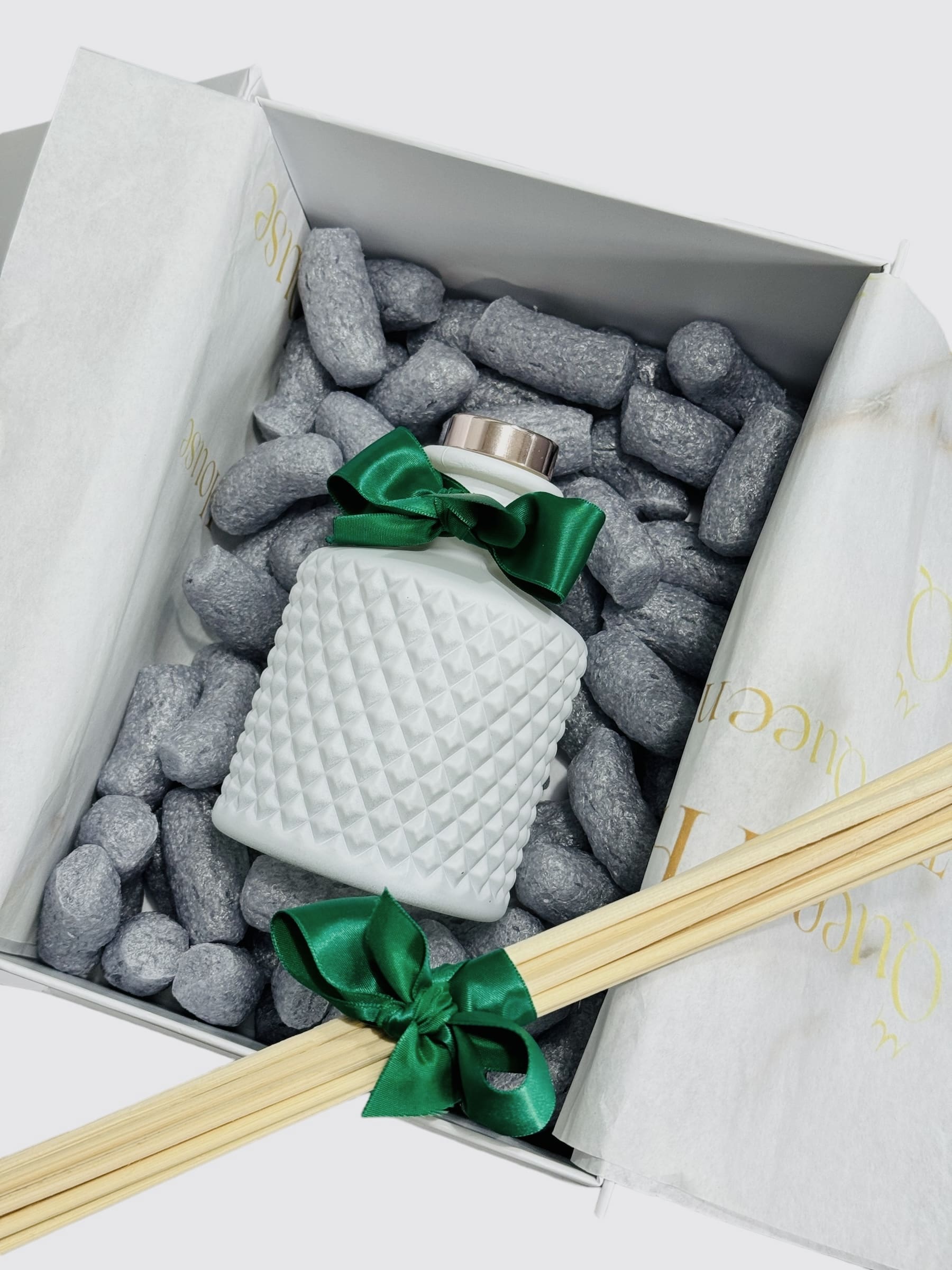 This diffuser is perfect for those who appreciate luxury home fragrances and décor pieces that blend seamlessly into modern, sophisticated interiors. The added ribbon detail makes it an ideal gift choice, offering a visually appealing and thoughtful presentation.