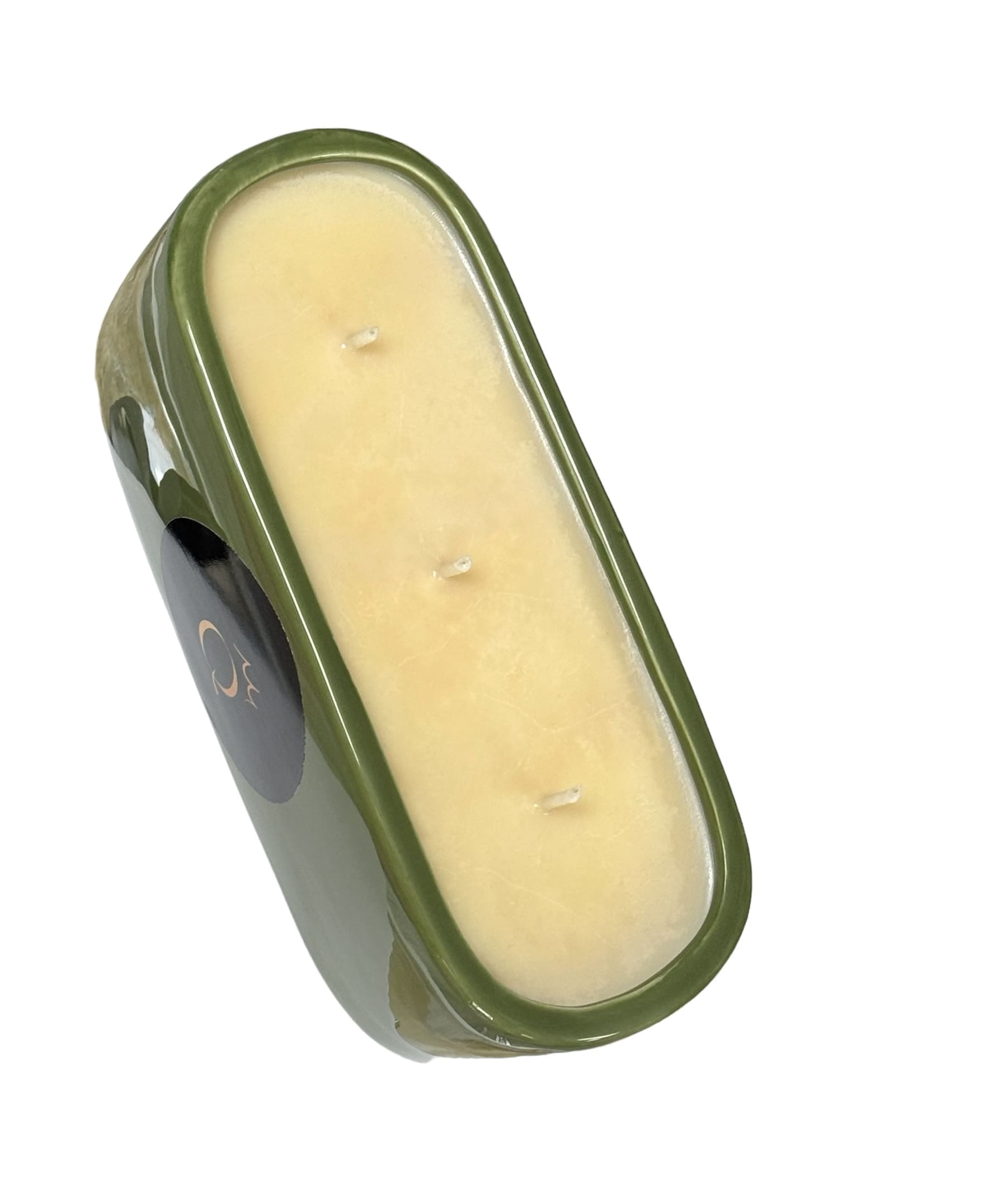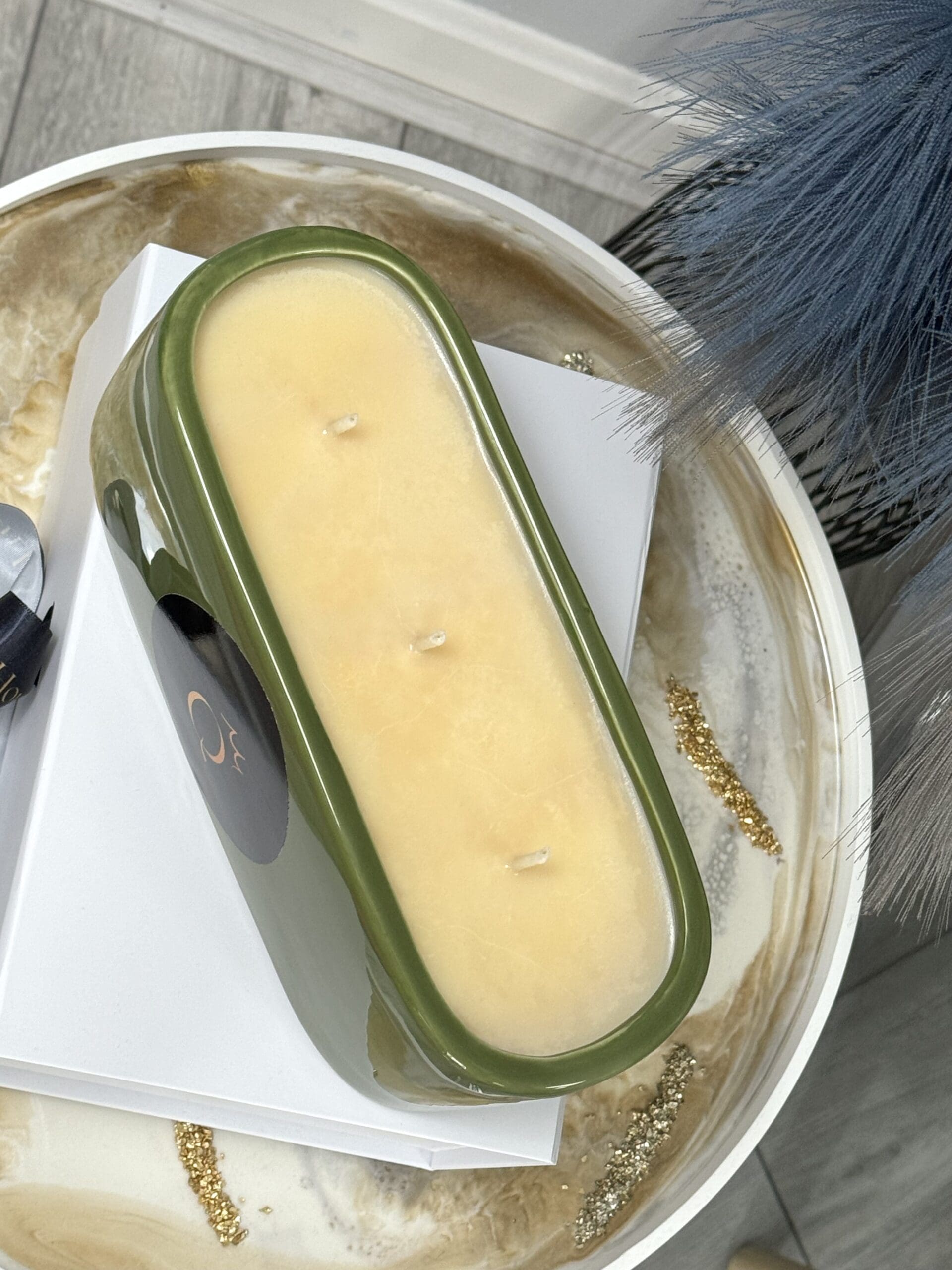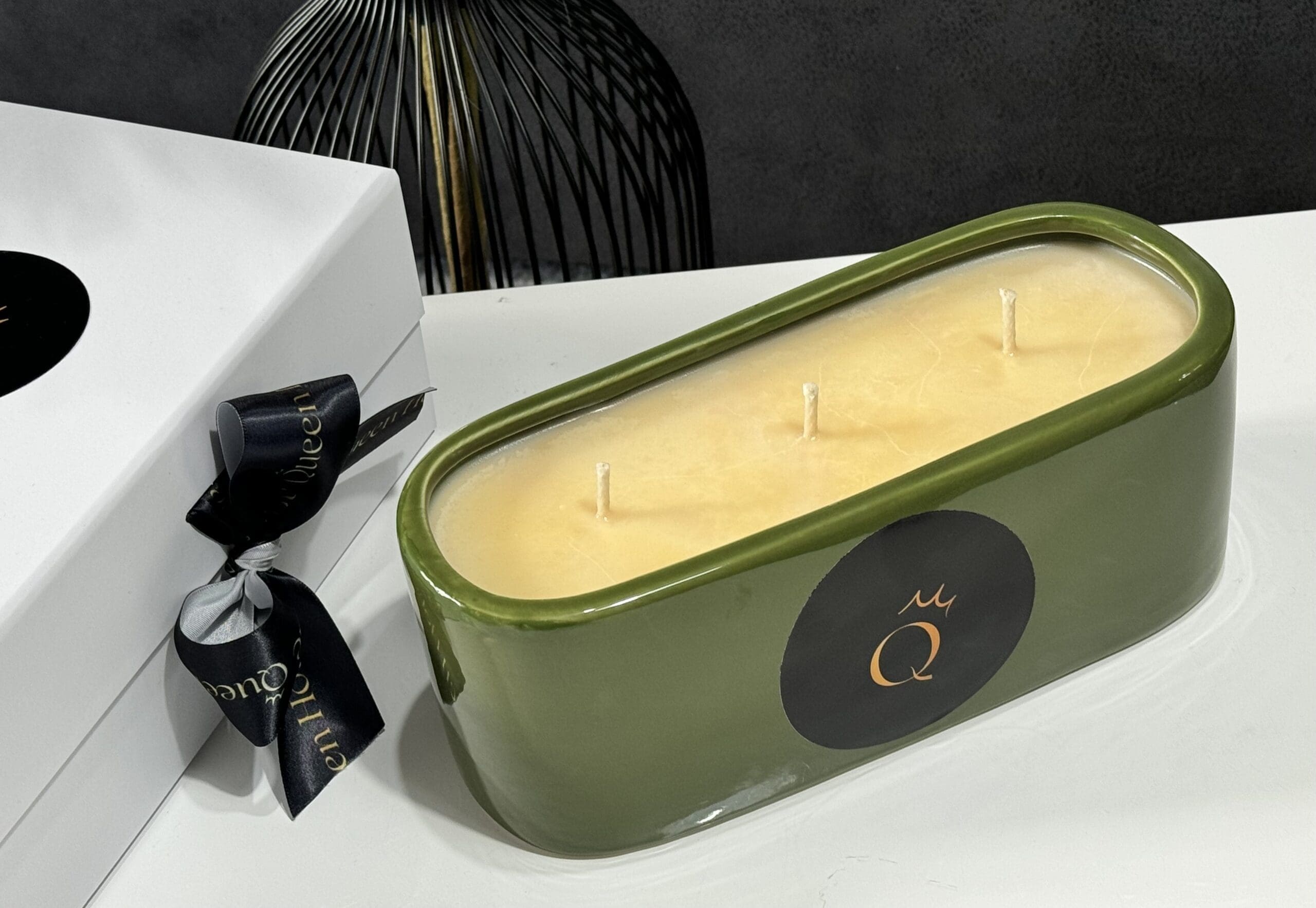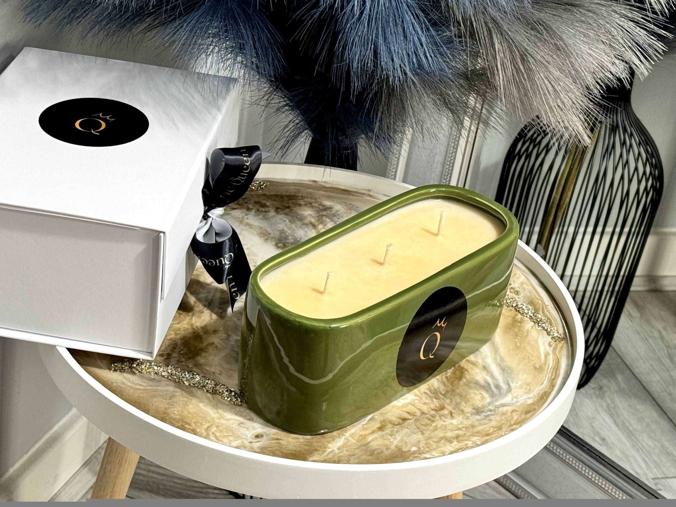 ,,Fire-pit’’ An elegantly designed, large-sized candle weighing 1500g. The candle has three evenly spaced wicks, ensuring an even burn and optimal scent distribution. The ceramic container has a minimalist yet stylish aesthetic. This design makes it a visually appealing addition to any modern home décor, particularly suitable for settings that favour a contemporary and sophisticated look.