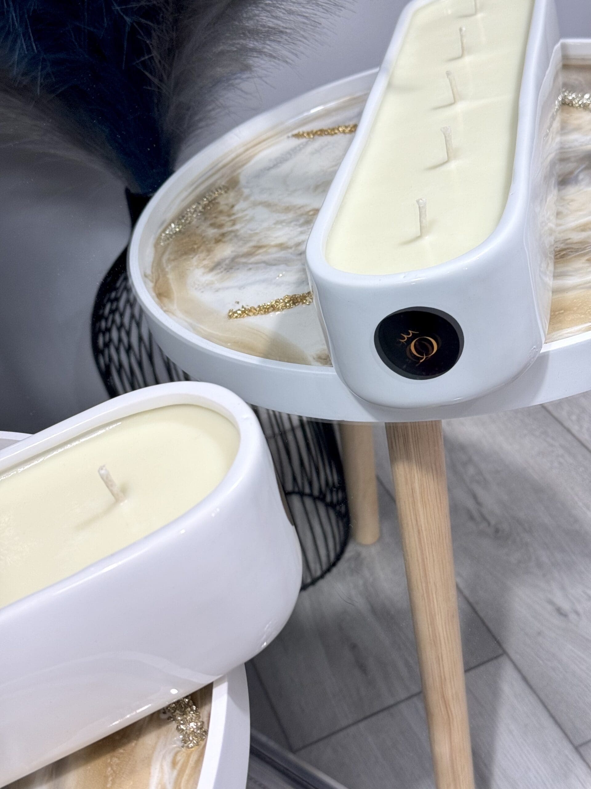 ,,Fire-pit’’ This elegantly designed candle, weighing 2000g, features four evenly spaced wicks for an even burn and optimal scent distribution. The ceramic container boasts a minimalist yet stylish aesthetic, making it a visually appealing addition to any modern home décor. It’s particularly suitable for settings that favour a contemporary and sophisticated look. Available in three colours, this candle adds a touch of elegance to any space.