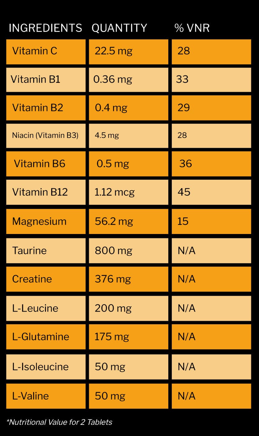 Night Out is a food supplement enriched with amino acids, vitamins, mineral salts, creatine, several B-group vitamins, and taurine, all working together to restore the body’s balance and recharge your energy levels.