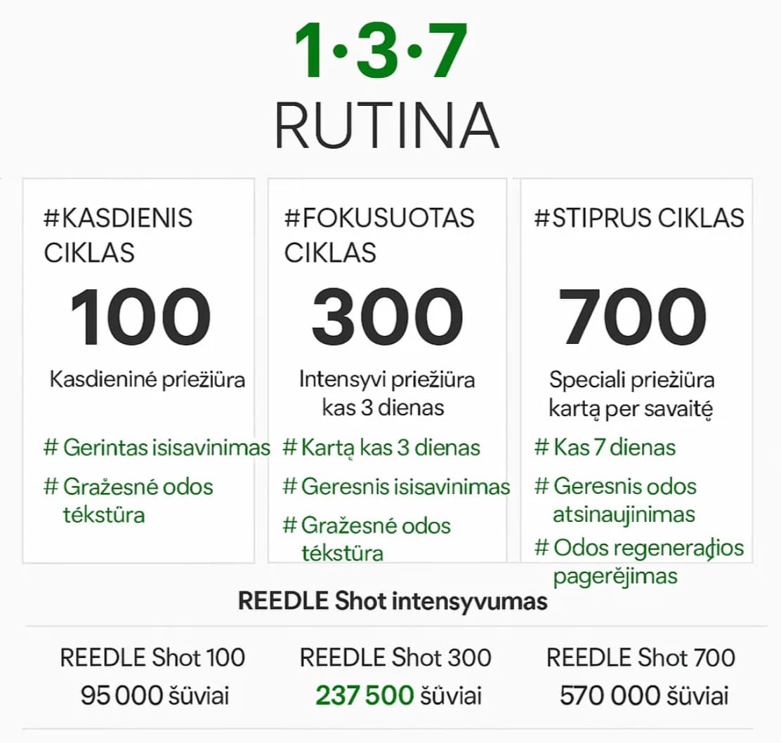 • Do not combine with Vitamin C, retinol, or other Reedle Shot strengths on the same day.